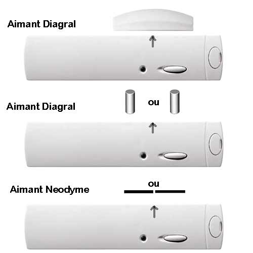Si cette opération vous fait peur, vous pouvez choisir cet aimant plat (épaisseur 1mm); il faudra simplement veiller à sa bonne disposition par rapport au boîtier, différente de celle d'un aimant cylindrique (voir photos ci-dessous).